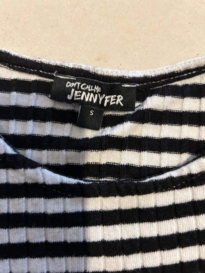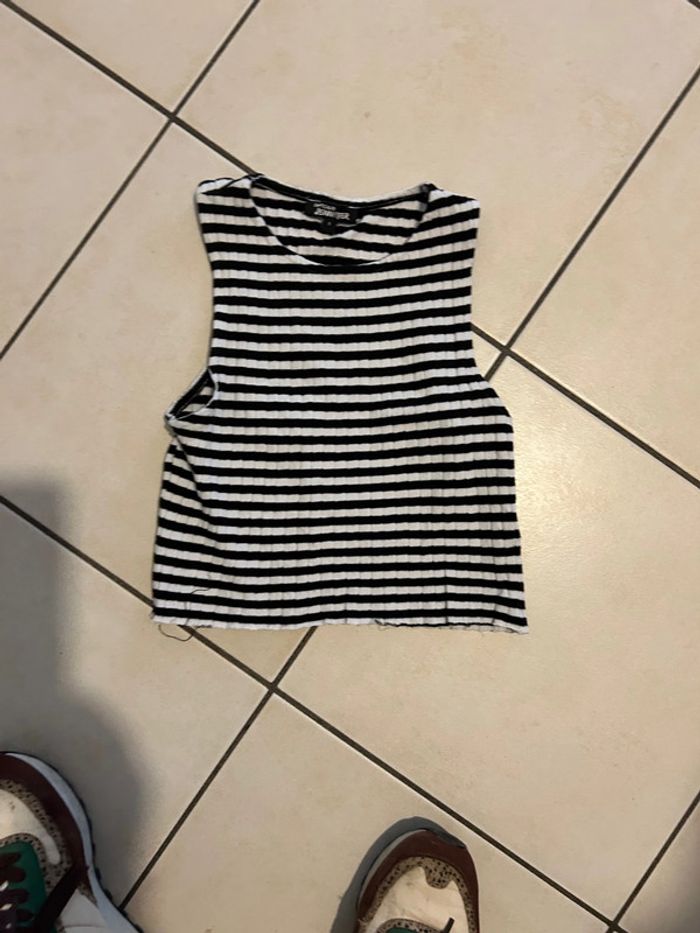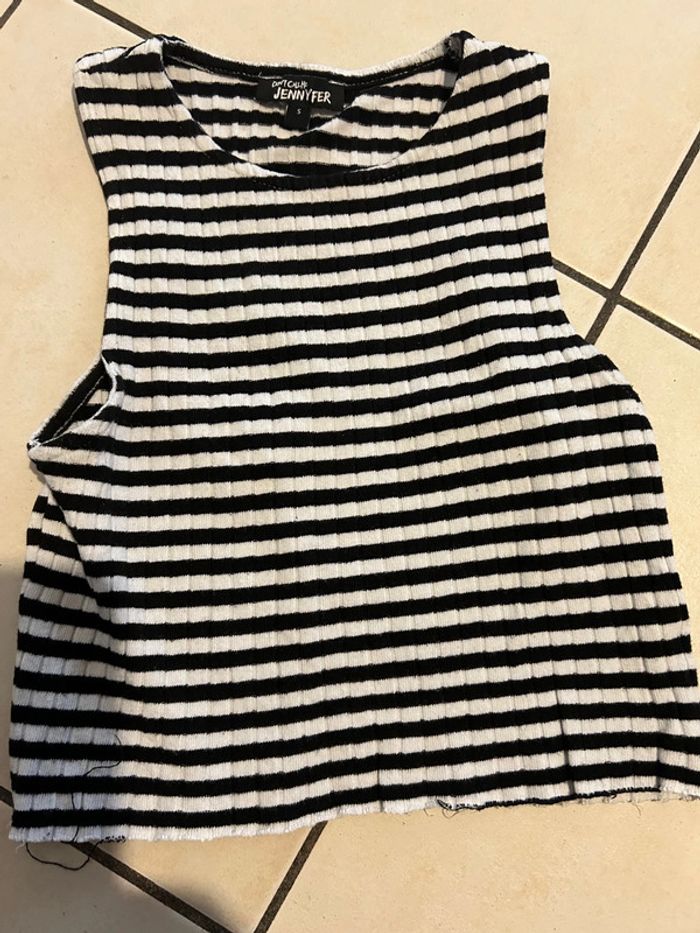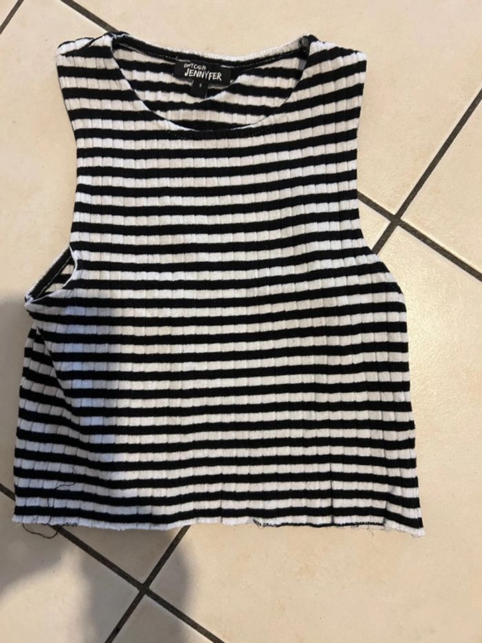 Taille S en maille blanc rayé noir de chez Jennyfer