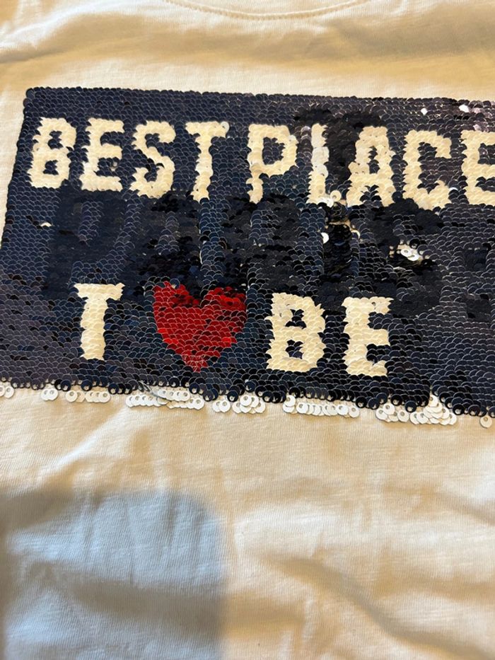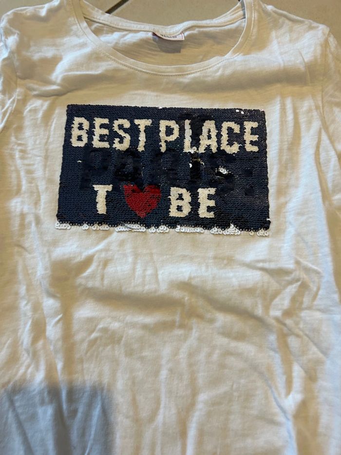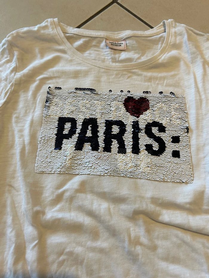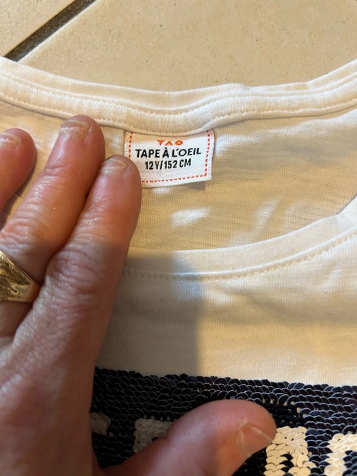 Tee shirt manches longues assez fin blanc à sequins marque tape à l œil taille 12 ans