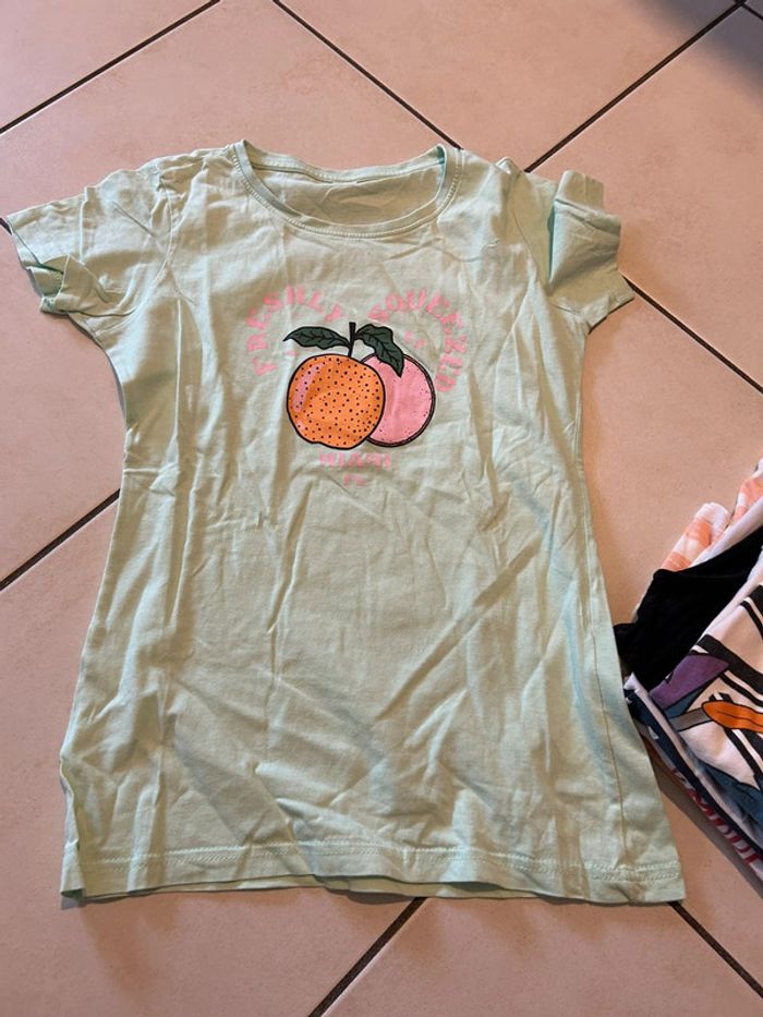 Tee shirt manches courtes vert pale avec des fruits comme motif taille 158/164 acheter à Zeeman
