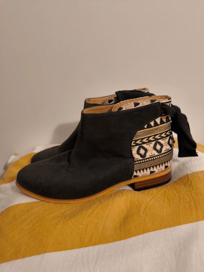 Bottines bonobo, couleur gris très foncé Motifs aztèques Peu portées