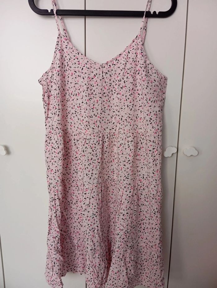 Robe d'été Clockhouse taille 44 Blanche et rose Bretelles réglables Très bon état #claireconcours44