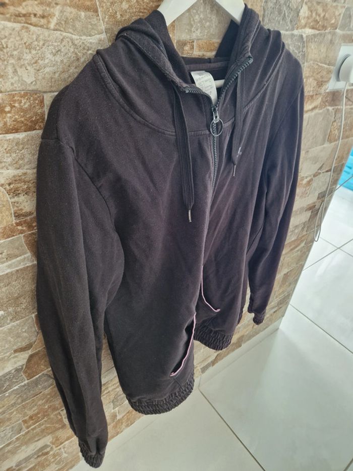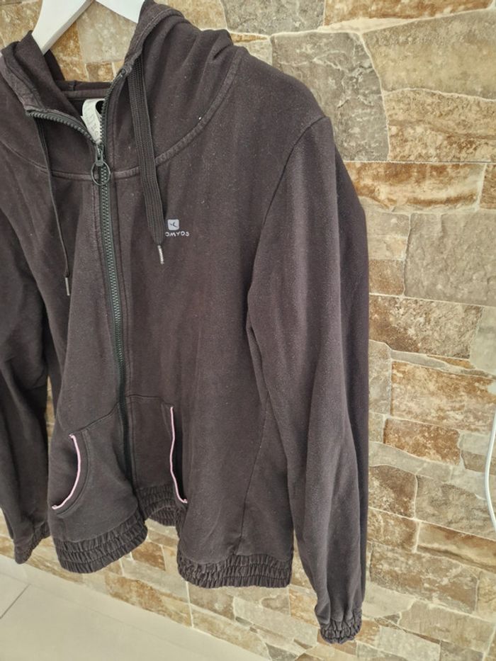1 veste noir taille XL marque DOMYOS, capuche avec liseret rose vers les poches #laetie69_femmesTAILLE46 #laetie69_femmesTAILLE44 #laetie69_femmesTAILLE42