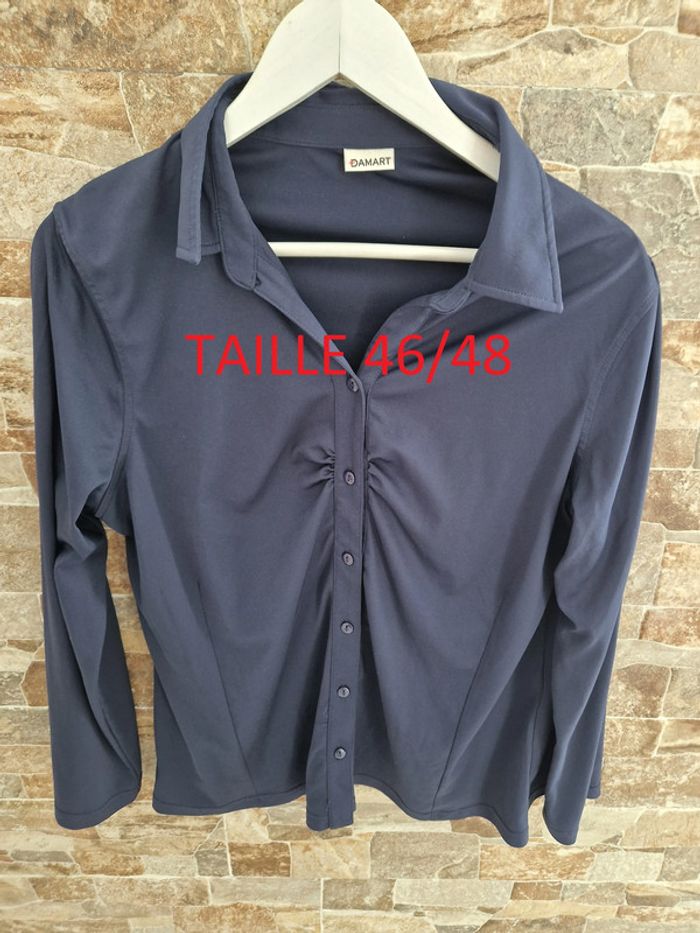 1 blouse manche longue couleur bleu taille 46-48 marque DAMART pas de étiquette taille mais correspond avec les autres haut comme taille #laetie69_femmesTAILLE48 #laetie69_femmesTAILLE46