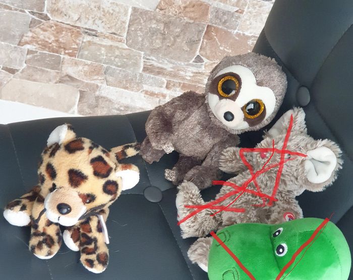 2 peluches : 1 leopart 13 cm env marque PIPPINS 2€ 1 hibou 17 cm mmarque TYSILK 2€ CE -------------------------------------------------------- si vous prenez les 2 le lot à 3€ -------------------------------------------------- #laetie69_jouets