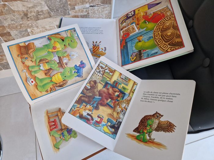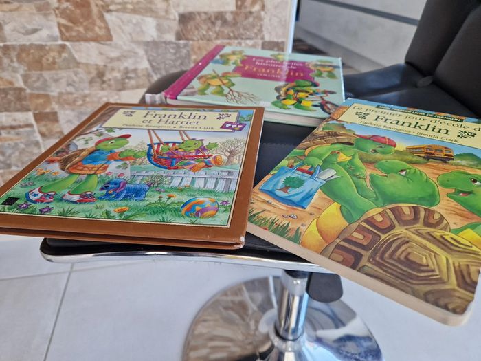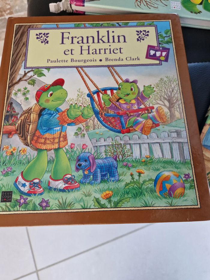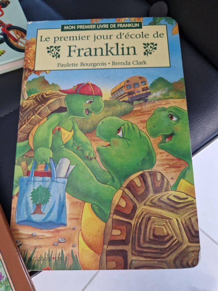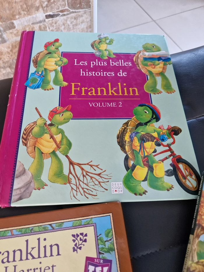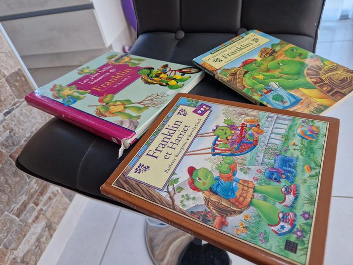 3 livres franklin : - le premier jour d'école de FRANKLIN (livre cartonné) très bon état - franklin et Harriet (très bon état) - Les plus belles histoires de Franklin volume 2 (livre complet juste page première et la dernière qui est abimé (collé sur la couverture intérieur mais qui ne correspond pas l'histoire) #laetie69_jouets