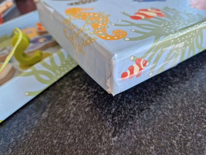 La pêche à la ligne est une activité qui demande de la concentration et de la patience. C'est aussi un jeu de manipulation pour l'enfant. Qu'il joue seul ou bien à 2, une canne à pêche magnétique en main, il s'agit de bien viser, et de pêcher le plus de poissons le plus rapidement possible. La boîte décorée sert de support de jeu