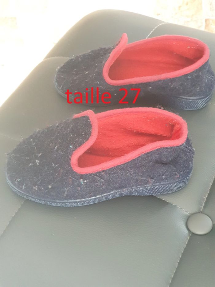 1 paire pantoufle taille 27 bleu et rouge enfant des bouloches 2 paires dispo, 2€ lun #laetie69_taille27