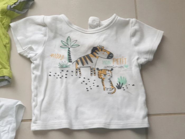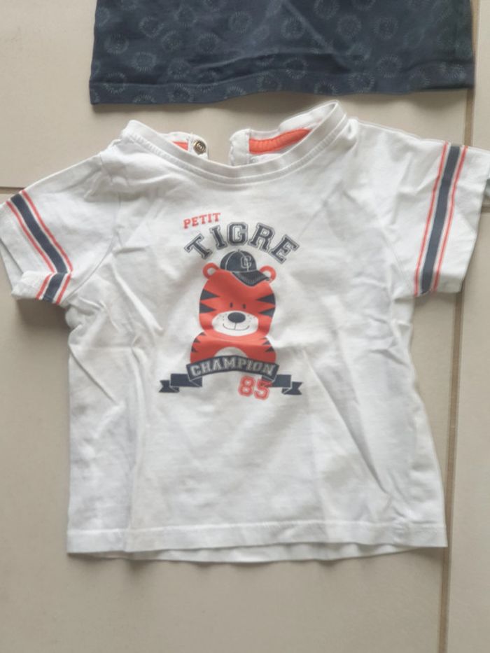 1 T- SHIRTS Manche courte bleu avec image tete lions marque kiabi 18mois 77-82cm avec 3 boutons devant 1 T- SHIRTS Manche courte vert avec capuche image tete de mort marque orchestra 18 mois 81cm 1 T- SHIRTS Manche courte blanc 18mois 77-82cm marque kiabi (2 boutons dans le dos) 1 T- SHIRTS Manche courte blanc 18mois 80cm (3 boutons dans le dos dt 1 cassé) image tigre 1 T- SHIRTS Manche courte blanc 18mois (3 boutons dans le dos ) image tigre - zebre #laetie69_taille18mois