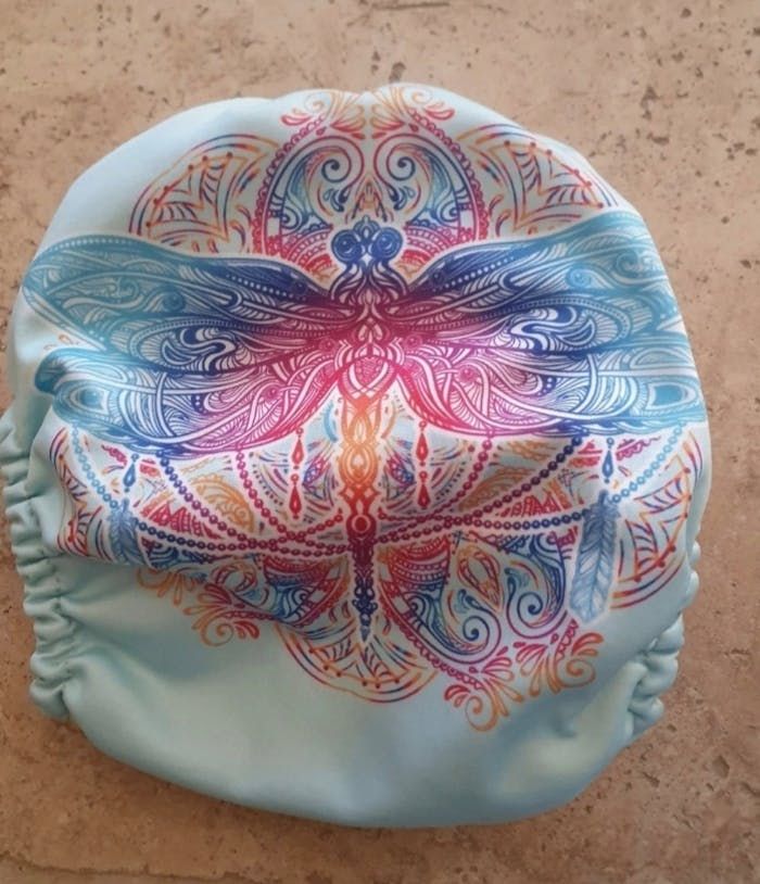 Couche mama koala très peu portée car gros roulement Lavage avec lessive Ariel en poudre selon recommandation des CLVA Très bon état. Couche évolutive