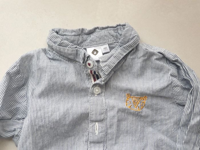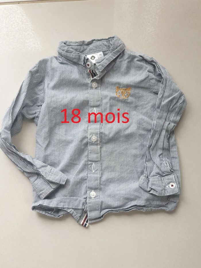 1 chemise ML rayures noir et blanc marque grain de blé 18 mois