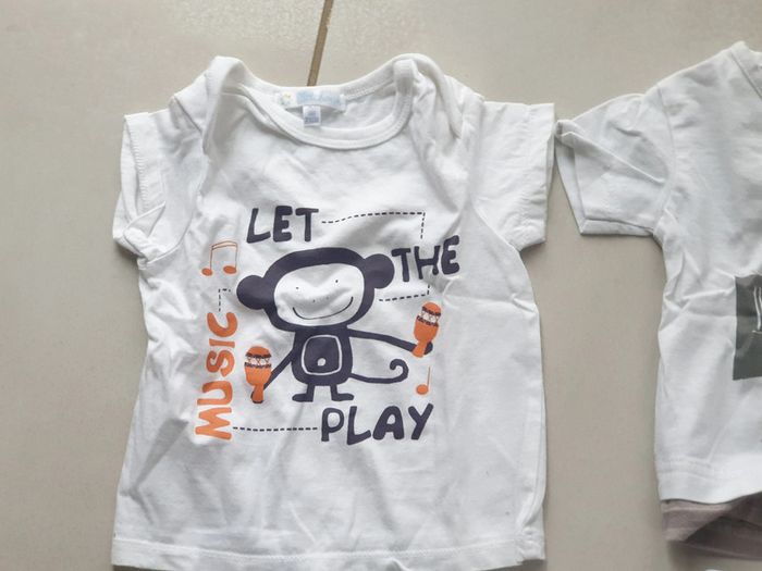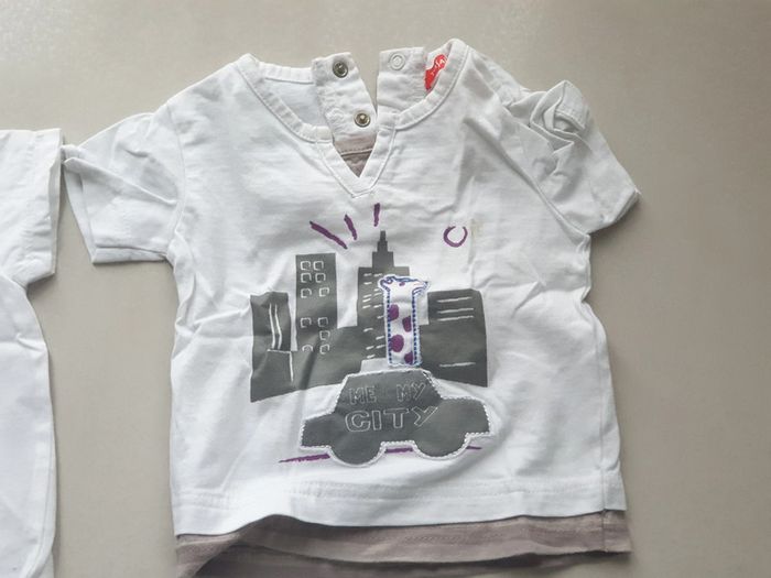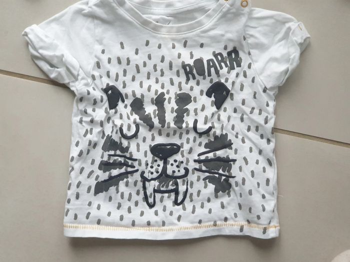 1 T- SHIRTS BLANC avec image VISAGE animal Manche courte avec 2 boutons sur le coté 9 mois marque CREEKS 1 T- SHIRTS BLANC avec image singe let the play Manche courte 9 mois 71 cm marque kitchoun 1 T- SHIRTS BLANC avec image ville Manche courte 9 mois marque tissaia #laetie69_taille9mois