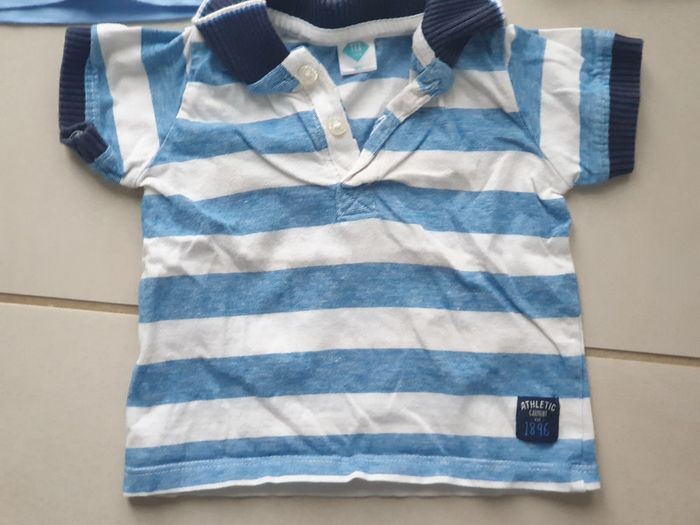 1 T- SHIRTS rayures bleu et blanc Manche courte avec 2 boutons devant 9 mois marque TEX 1 T- SHIRTS rayures gris et blanc avec image 1 ANIMAL AVEC CASQUE Manche courte avec 3 boutons dans le dos 9 mois marque TISSAIA 1 T- SHIRTS bleu avec image GRENOUILLE ET POCHE Manche courte avec 2 boutons sur le coté 9 mois 71 cm marque MA ET ZAZA #laetie69_taille9mois