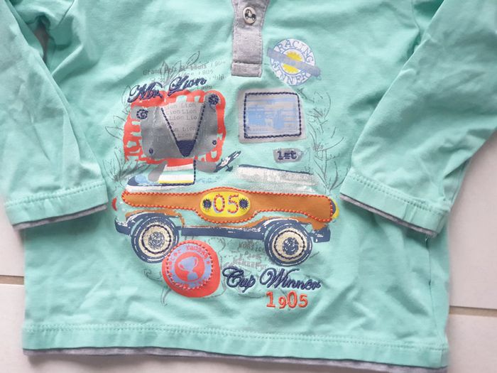1 t-shirt manche longue avec capuche vert marque orchestra 9 mois 71 cm 3 boutons devant avec image voiture #laetie69_taille9mois