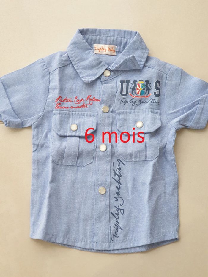 1 chemise manche courte 6 mois bleu marque tripley baby #laetie69_taille6mois