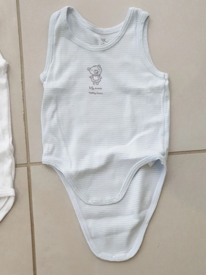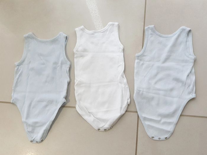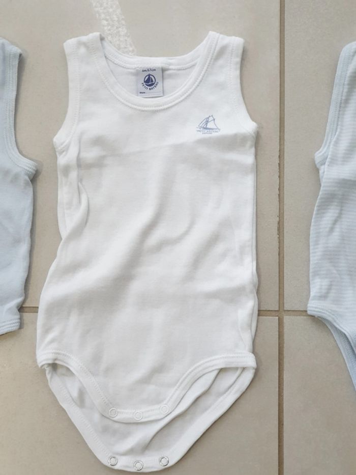 1 bodies sans Manche blanc taille 6 mois/67 cm marque petit bateau 1 bodies sans Manche bleu taille 6 mois marque tex 1 bodies sans Manche blanc et rayures bleu ciel taille 6 mois marque tex #laetie69_taille6mois