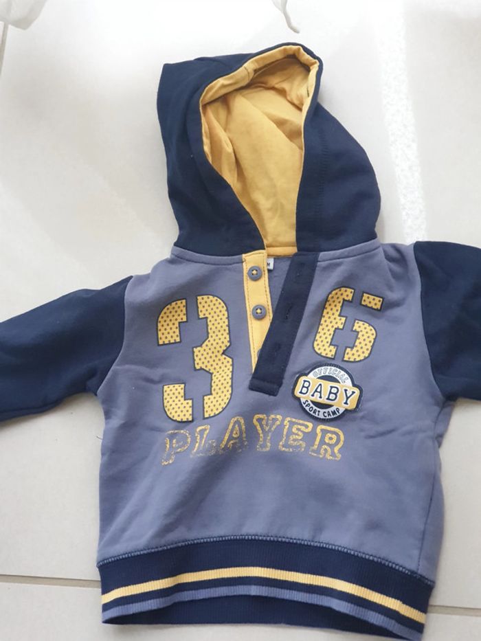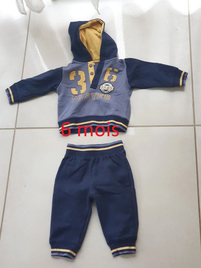 1 ensemble bleu jogging et pull avec capuche 6 mois