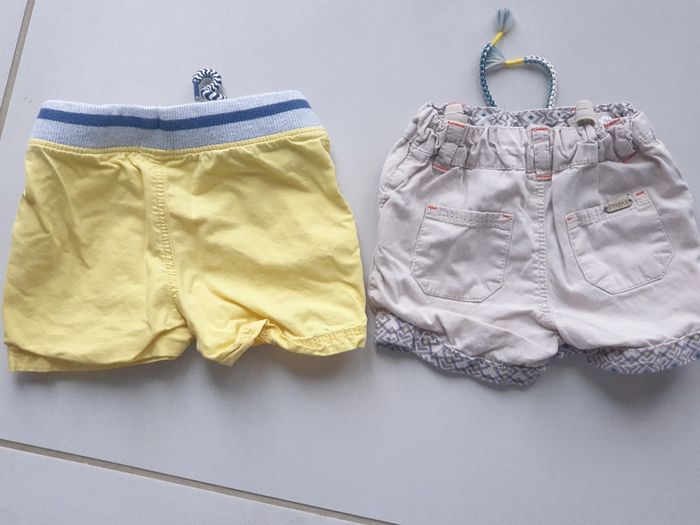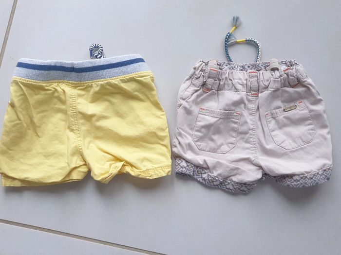 1 short écru taille 12 mois marque CREEKS 1 short jaune 9 mois marque PAT et RIPATON (taille grand) #laetie69_taille12mois #laetie69_taille9mois