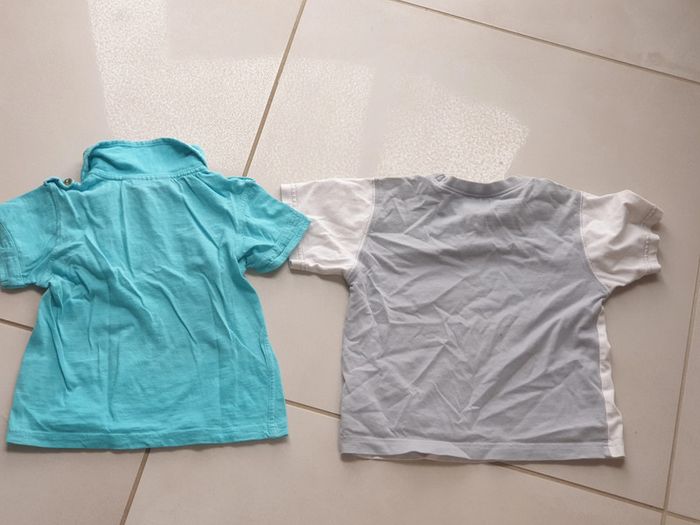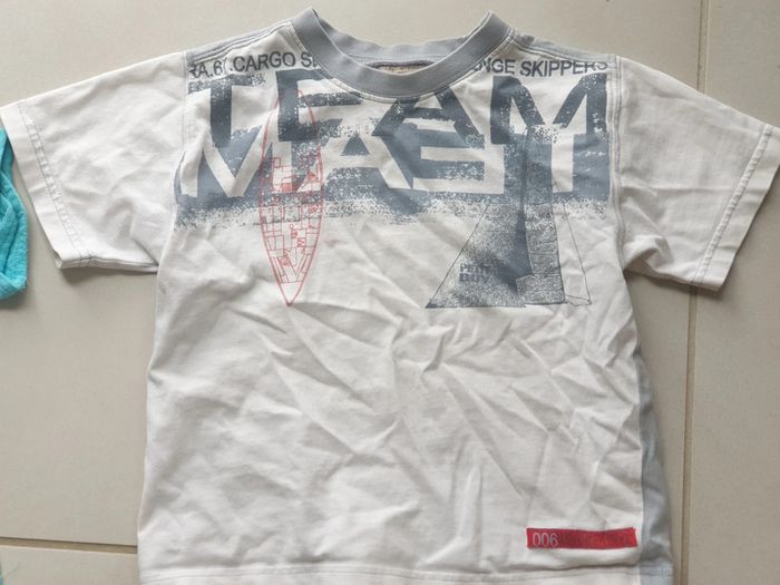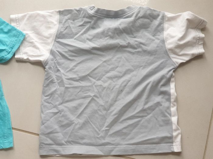 2 t-shirt 4 ans : 1 t-shirt blanc gris 4 ans 98 - 102cm marque PETIT BOY 1 t-shirt bleu marque ELDYS 4 ans avec 2 poches devants et un zip devant pour ouvrir en haut #laetie69_taille4ans