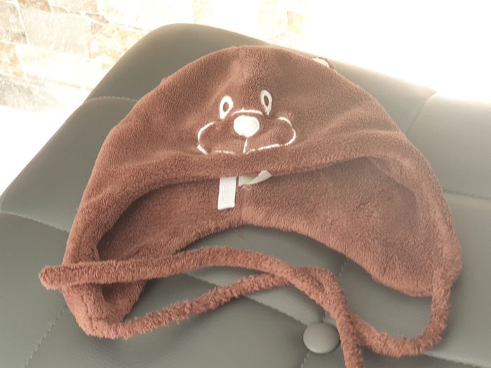1 bonnet marron avec ficelle ourson avec oreille 2-3 ans - photo numéro 2