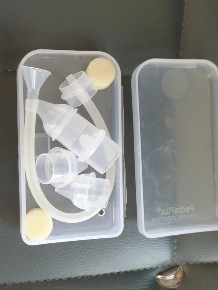 PEDIAPLUS Mouche Bébé avec Boîte Transport et 3 Embouts ET 2 MOUSSES JUSTE LA BOITE EST CASSE, mais avec un élastique permettra de tenir les accessoires dedans la boite Tres peu utilisé. #laetie69_puericulture