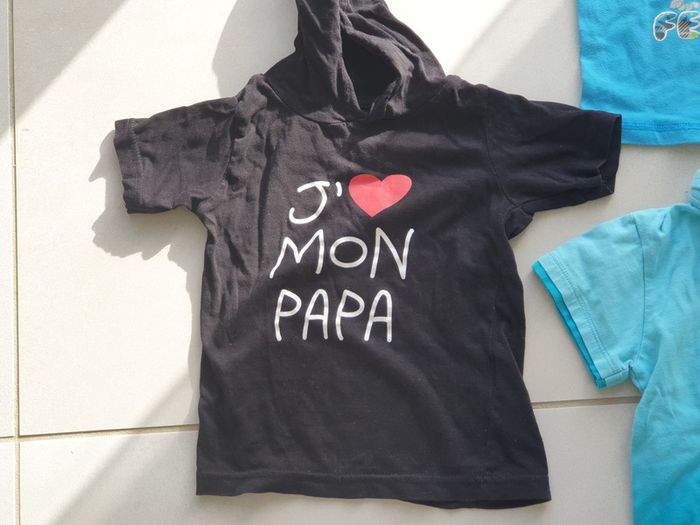 1 t shirt manche courte bleu taille 23 mois avec image ourson avec planche "ALOHA BEACH" 1 t shirt manche courte nuance bleu taille 23 mois avec image requin AQUATIC marque OBAIBI 1 t shirt manche courte blanc taille 23 mois avec écriture AUSSI COSTAUD que mon PAPA !! marque barbouillage 1 t shirt manche courte manche courte rayure bleu blanc marque SERGE BLANCO taille 2 ans 1 t shirt manche courte noir taille 23 mois marque barbouillage J aime MON PAPA #laetie69_taille2ans #garcon #taille2ans #tshirt