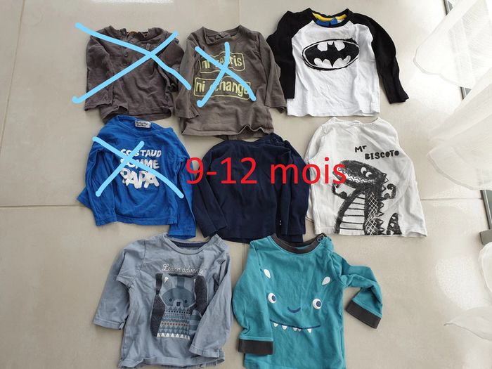 1 T-shirt manche longue bleu avec visage 12 mois marque tistaia 1 T- shirt manche longue blanc avec dinosaure MR BISCOTO 12 mois 1 T- shirt manche longue bleu avec Learn adventure 12 mois marque obaibi 1 T-shirt manche longue bleu marine 12 mois marque baby club 1 T-shirt manche longue BATMAN 9-12 mois #laetie69_taille12mois #laetie69_taille9mois #garcon #taille12mois #tshirt