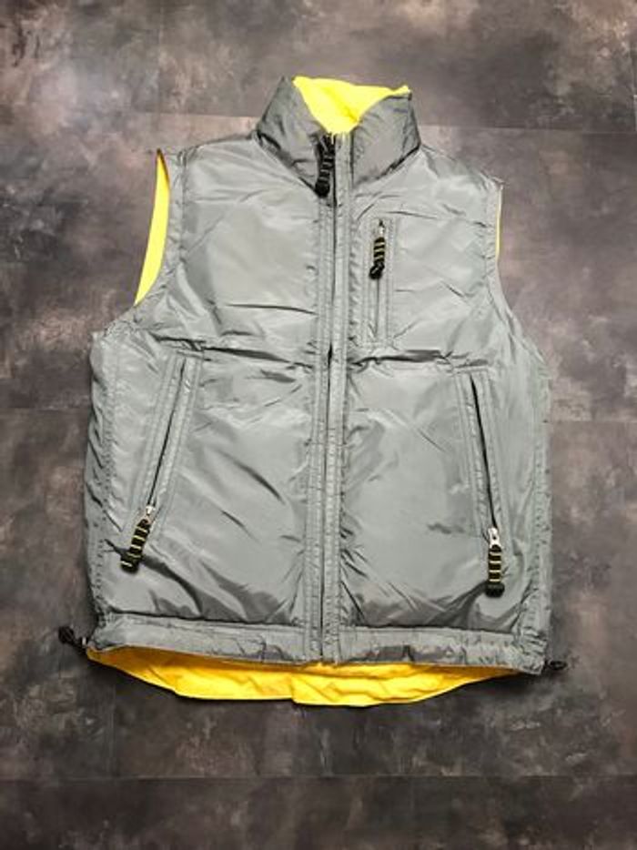 superbe blouson sans manche GAP d'une très belle qualité, rembourré duvet et plumes il est réversible, un côté jaune sublime et un côté gris...super chaud . Taille XS