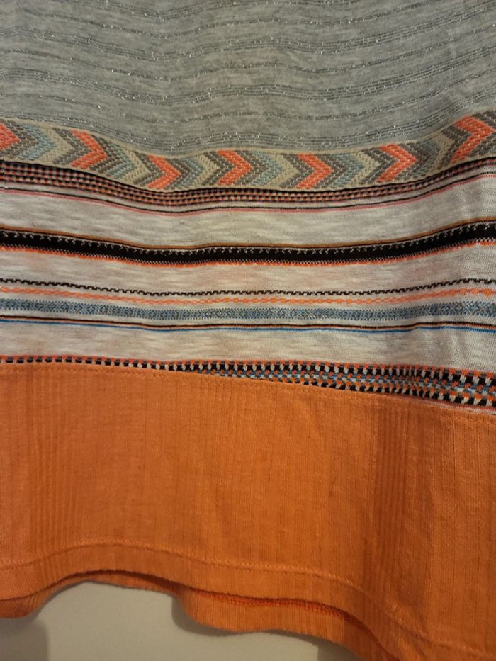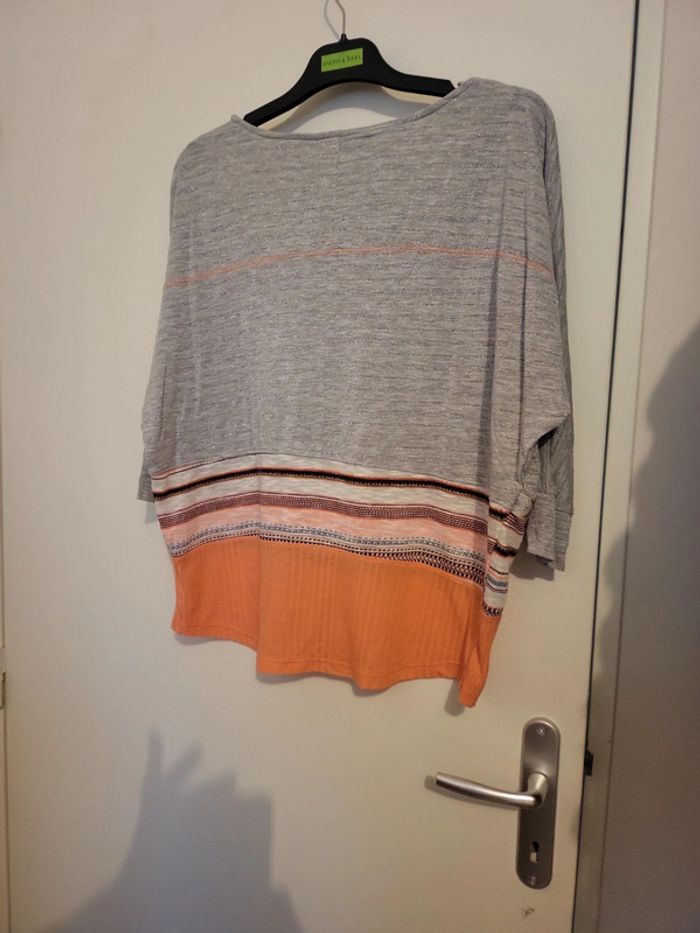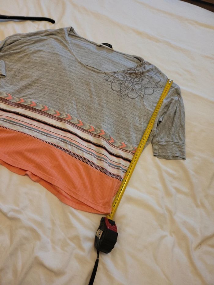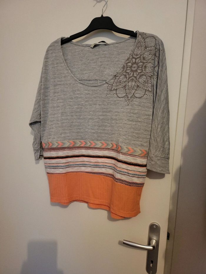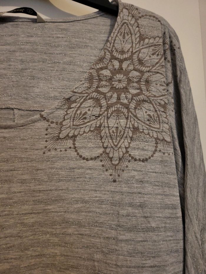 Desigual Large tS Gris légèrement lurex Bas saumon/corail Manches 3/4 Très joli Peu porté C4