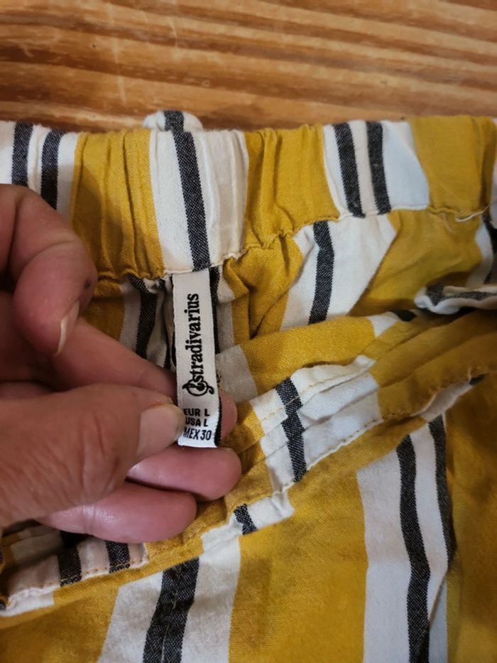 Stradivarius tL Moutarde gris et blanc Avec ceinture tissu Ormis son "non repassage", pas de défaut apparent Cf mon.profil