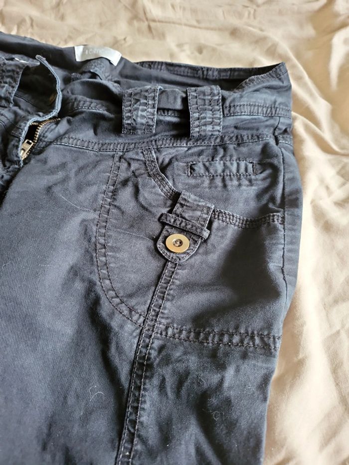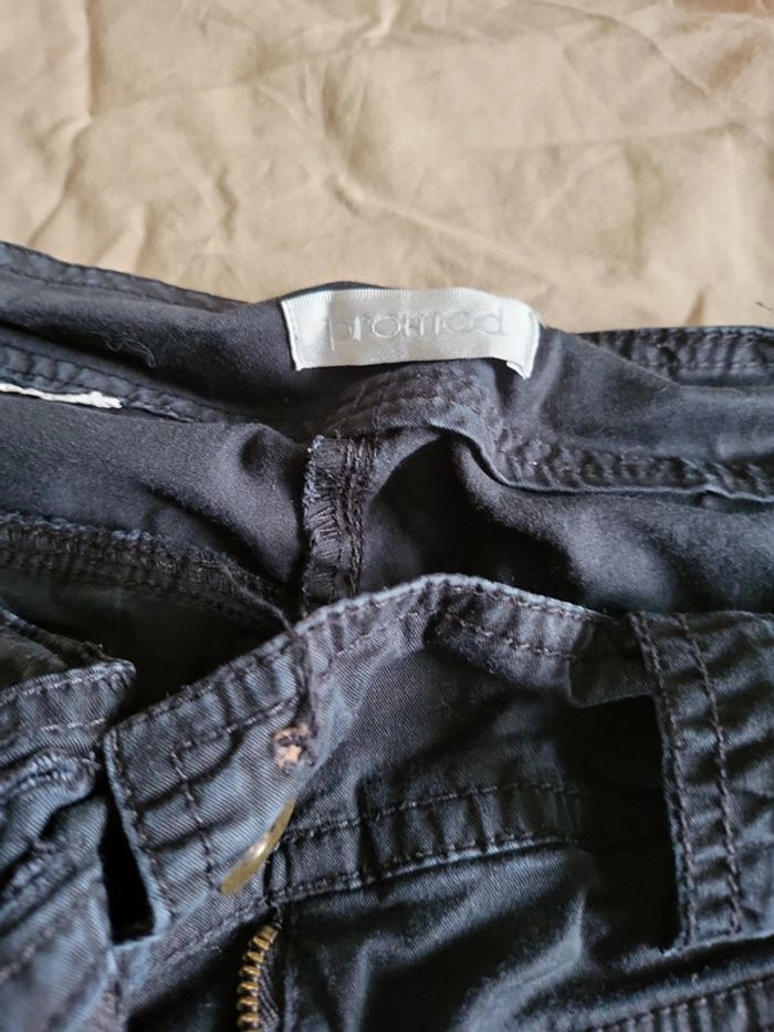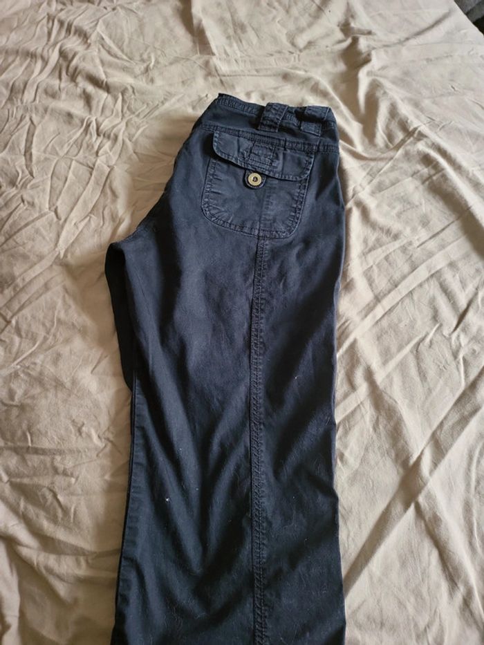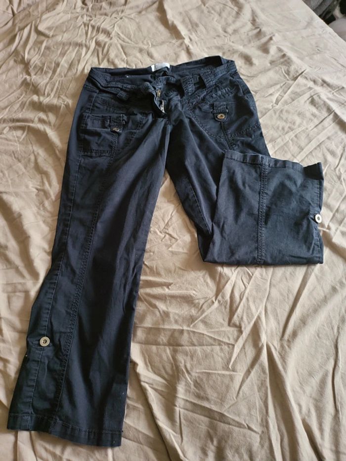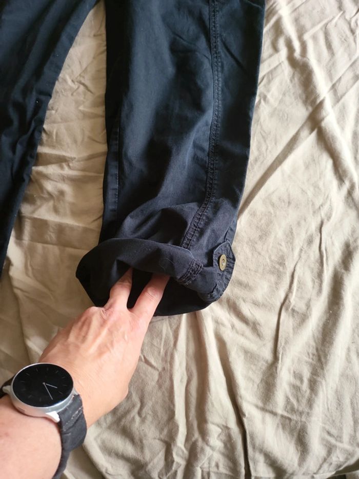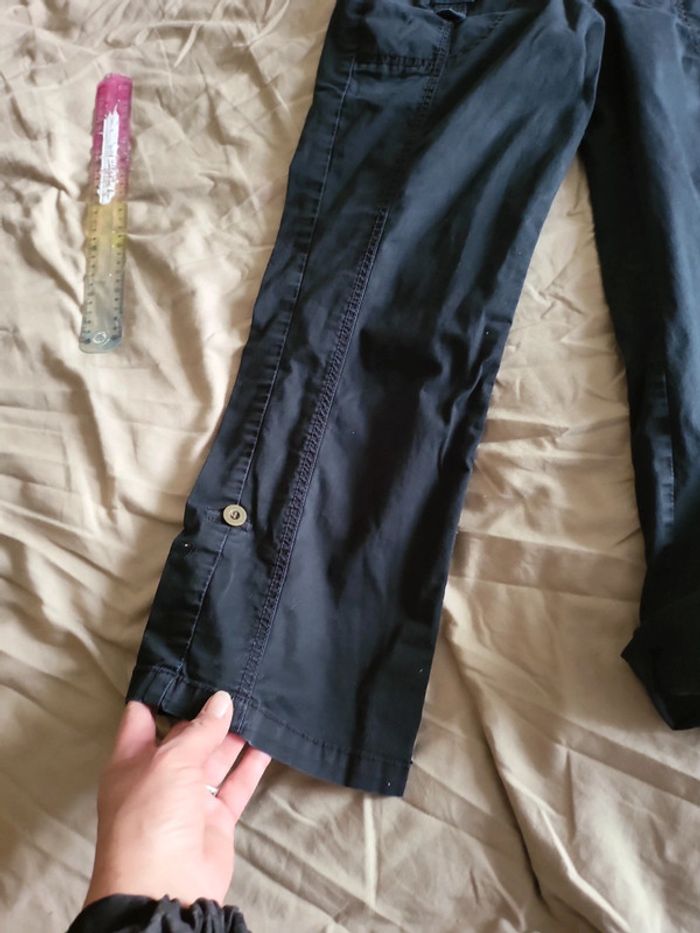 Pantalon noir à revers modulables grâce à boutons Taille environ 40 (etiquette retiree) 35cm à plat Bien porté mais bon etat Très confortable
