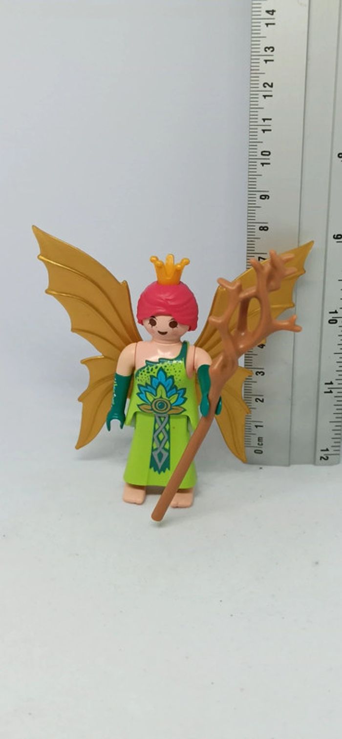 Fée femme ailes dorées avec cheveux roses et robe verte playmobil - photo numéro 1