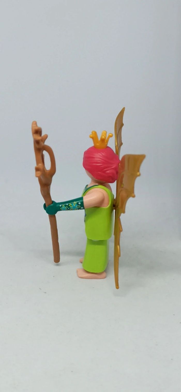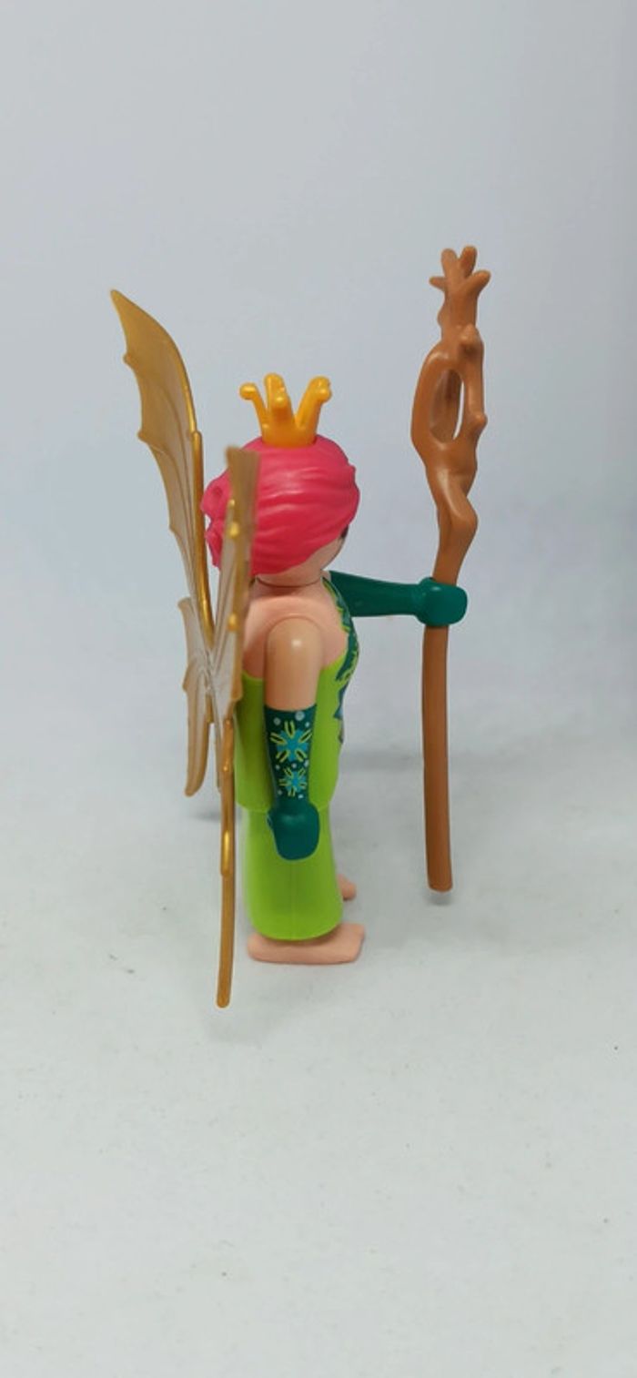 Fée femme ailes dorées avec cheveux roses et robe verte playmobil - photo numéro 3