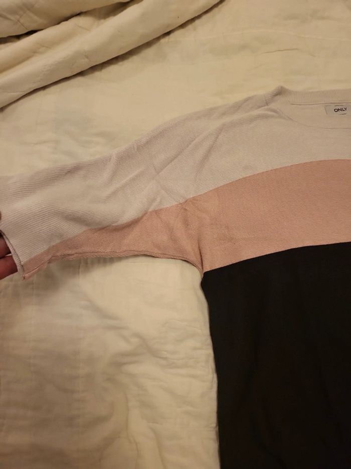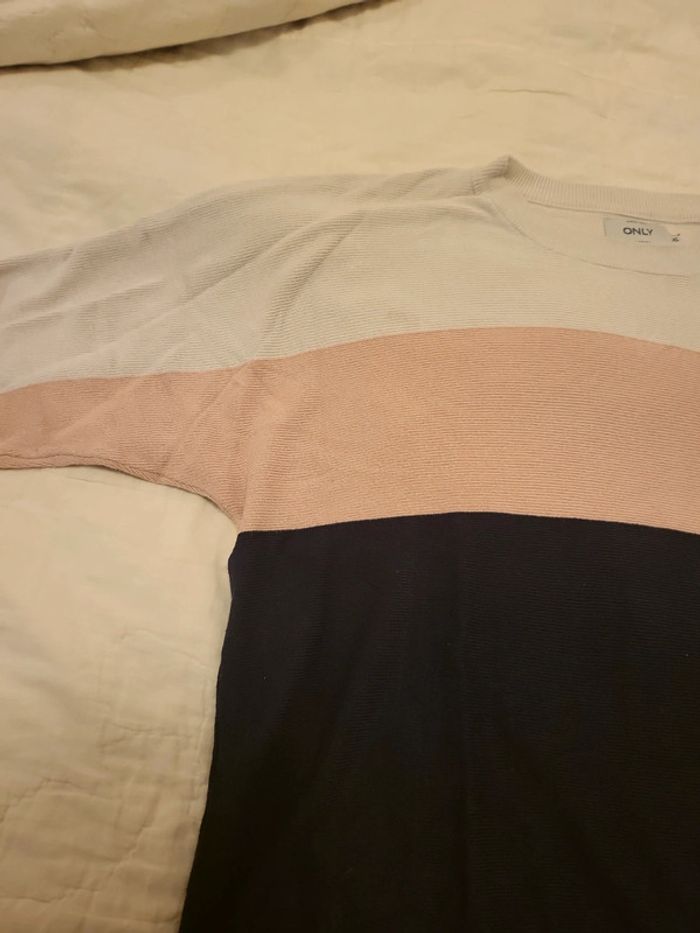 Marine rose et blanc Manches 3/4 Bien portée Avec qq auréoles à reprendre en bon lavage (devrait s estomper facilement) Only t XL