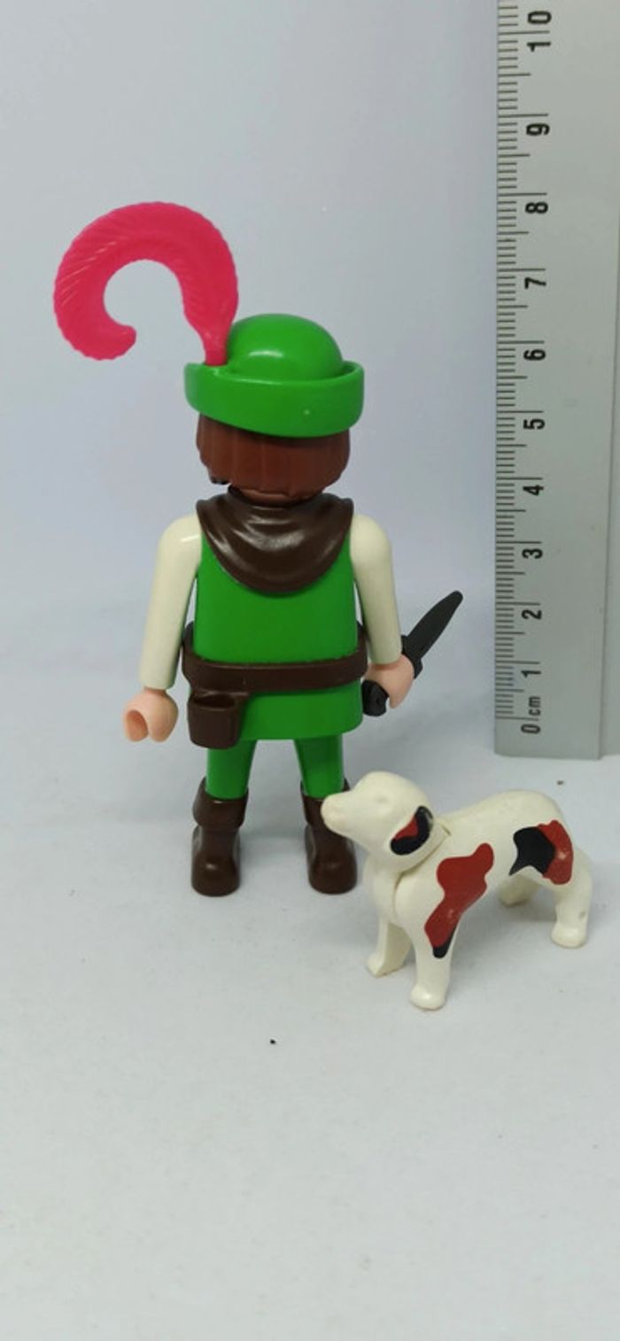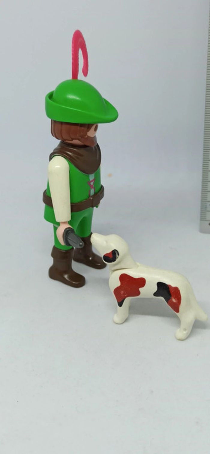 Homme chasseur moyen age avec habits verts et chien de chasse à courre playmobil - photo numéro 2
