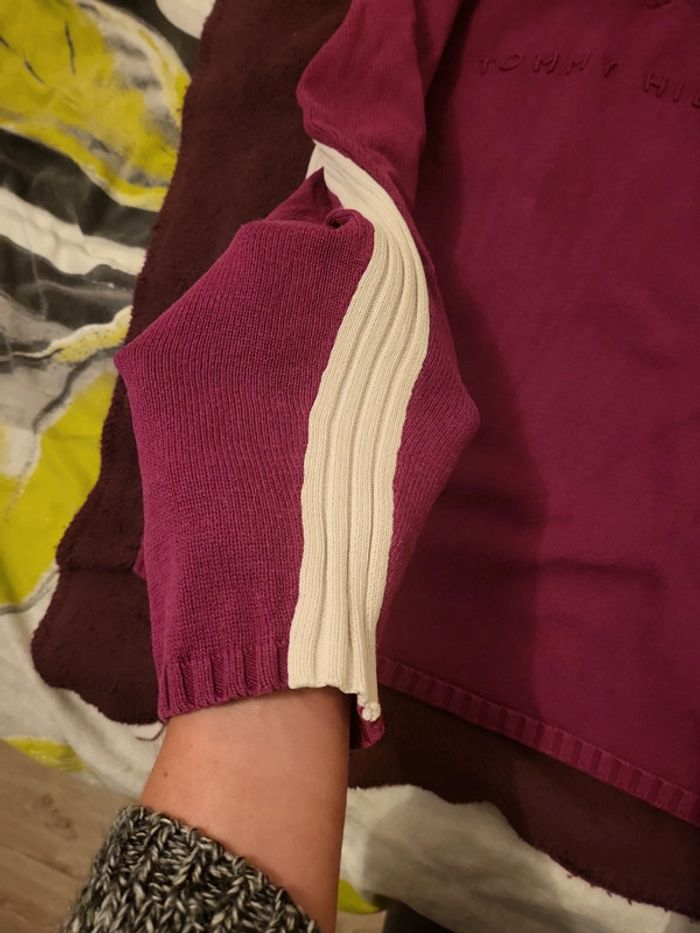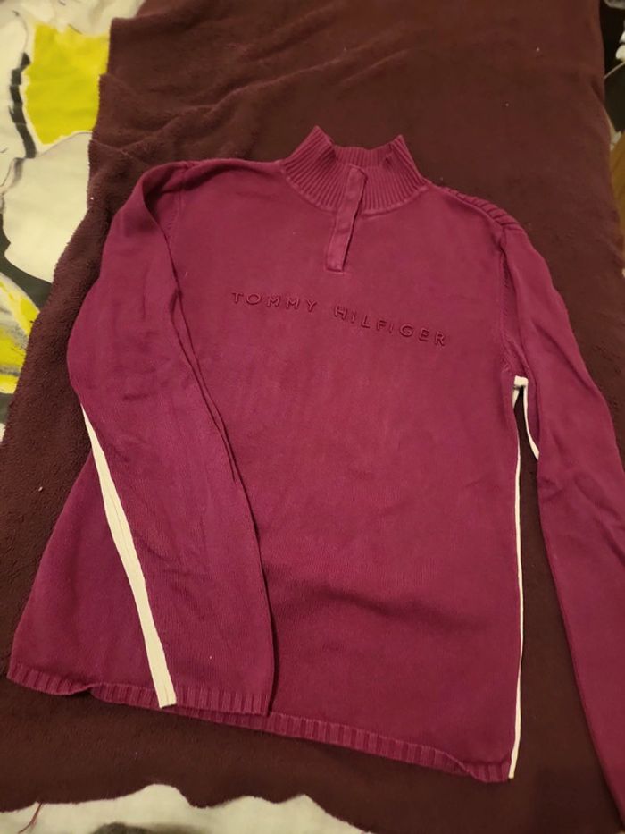 Pull fushia Tommy hilfiger Petit XXL plutôt taille L Bandes latérales blanches Fermeture du col par pression Bon etat