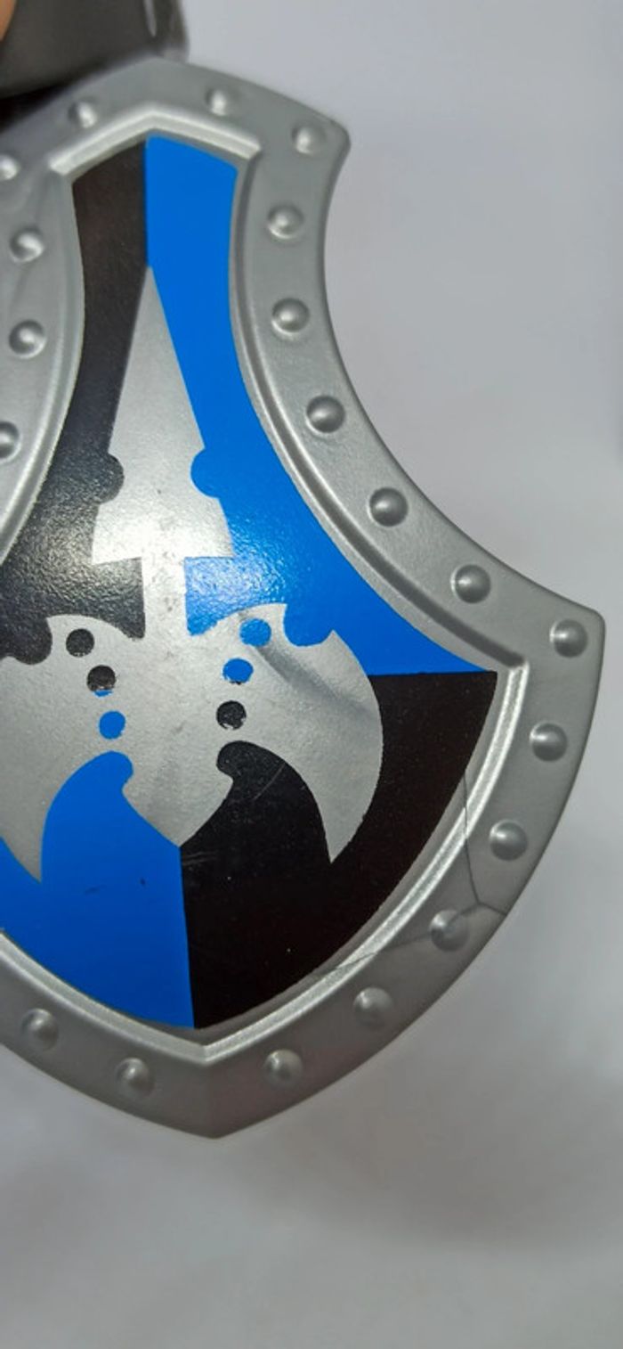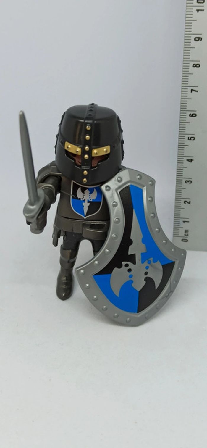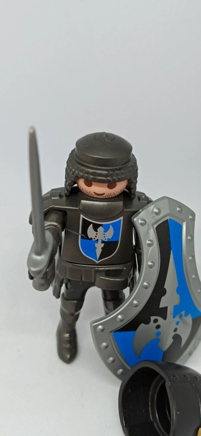 Homme chevalier avec armure grise et gros bouclier noir et bleu playmobil - photo numéro 7