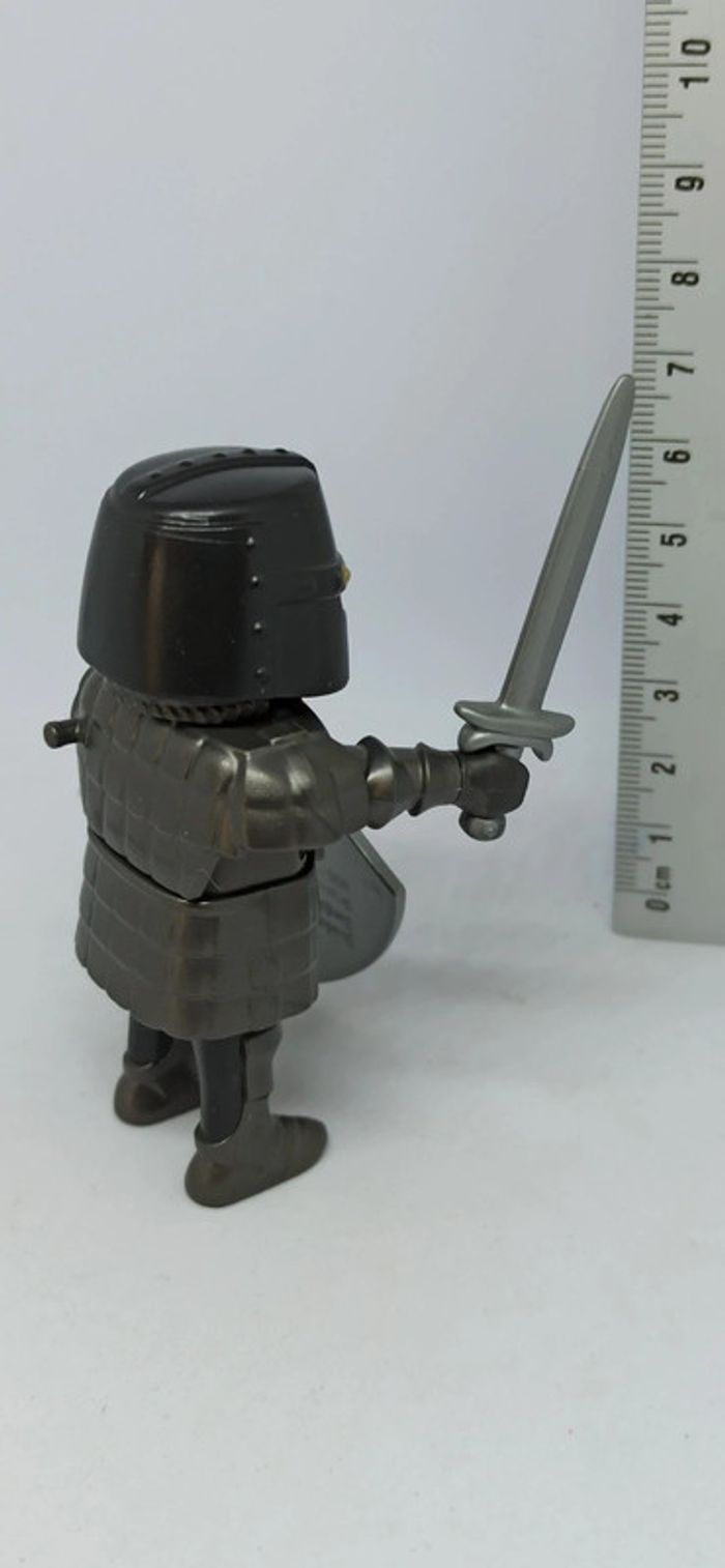 Homme chevalier avec armure grise et gros bouclier noir et bleu playmobil - photo numéro 6