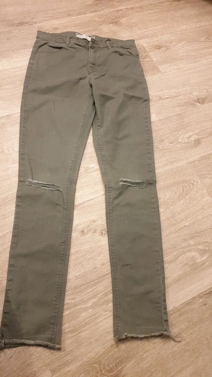 Marque H&M Taille 170 . 14 ans Kaki Genoux troués d'origine Bas de jambes effilées Parfait etat Envoi en mondial relay