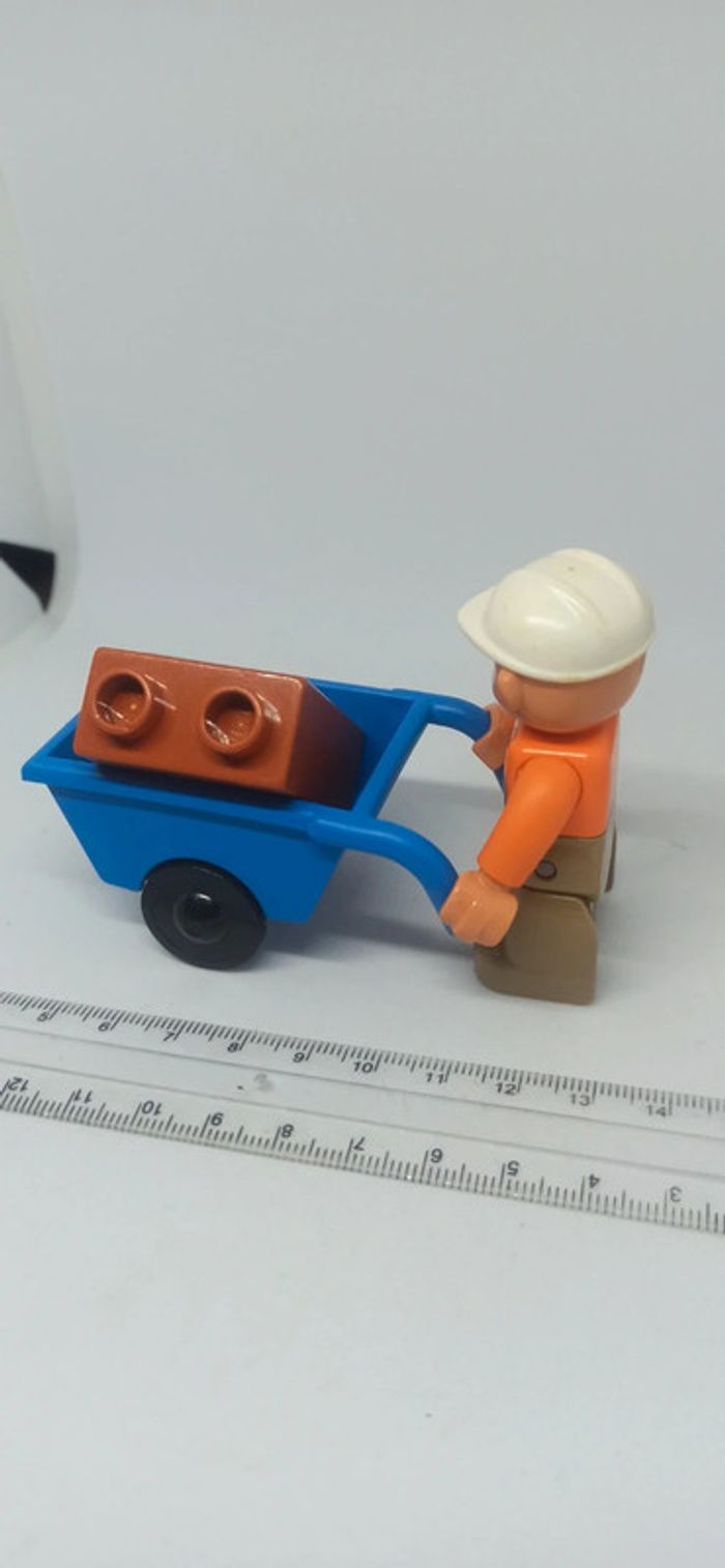 Homme avec brouette et brique lego duplo - photo numéro 1