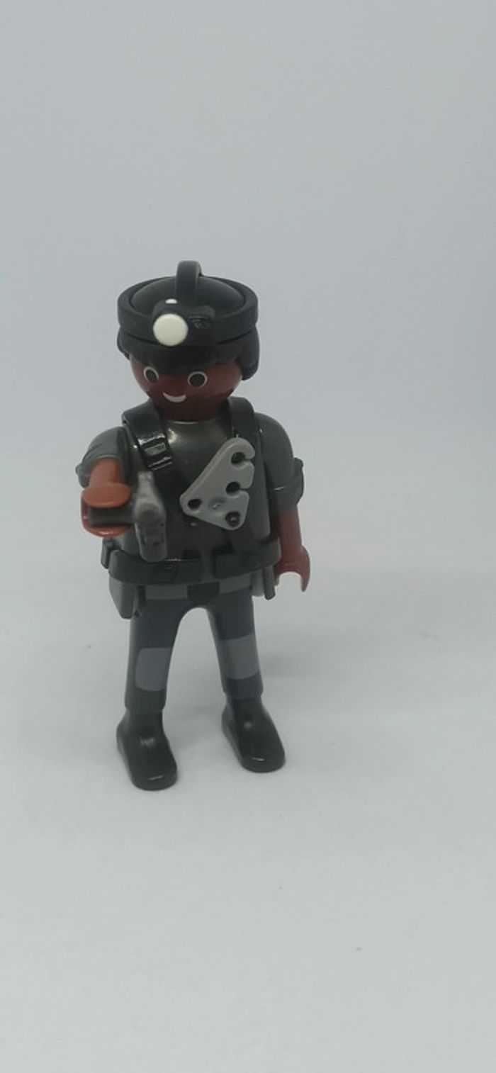 Homme policier avec lampe frontale et arme playmobil - photo numéro 1