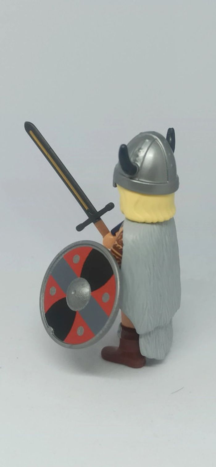 Homme viking Charlie super 4 du film movie avec peau grise et bouclier rond playmobil