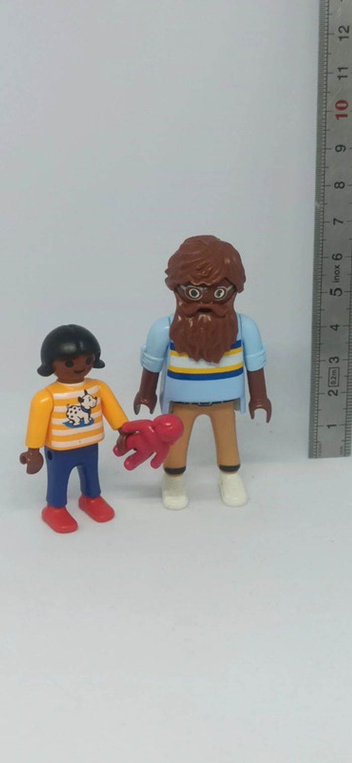 Homme avec barbe et fille enfant avec poupée playmobil - photo numéro 1