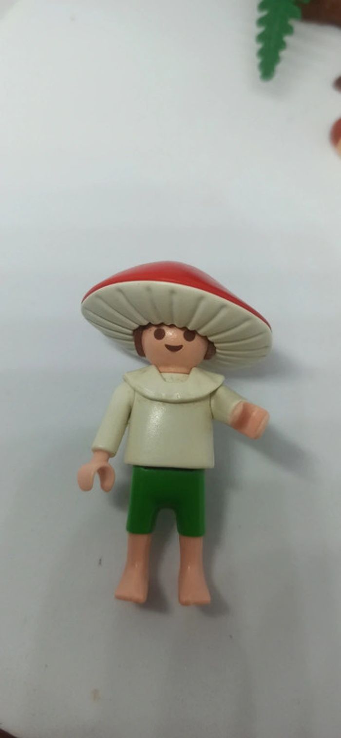 Enfant lutin gnome avec souche d'arbre et champignon playmobil