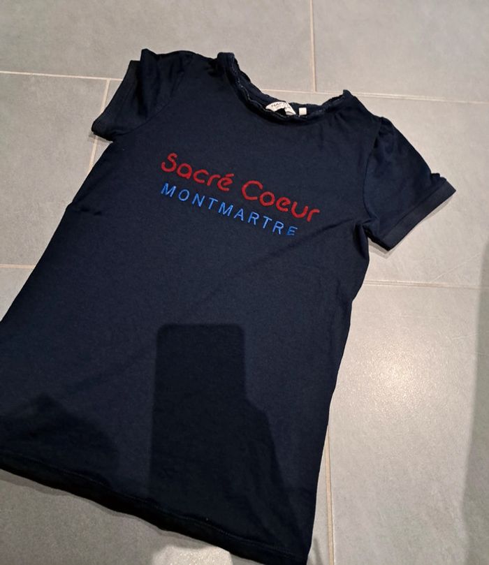 Joli t-shirt marine nn délavé en taille M col liseré pailleté