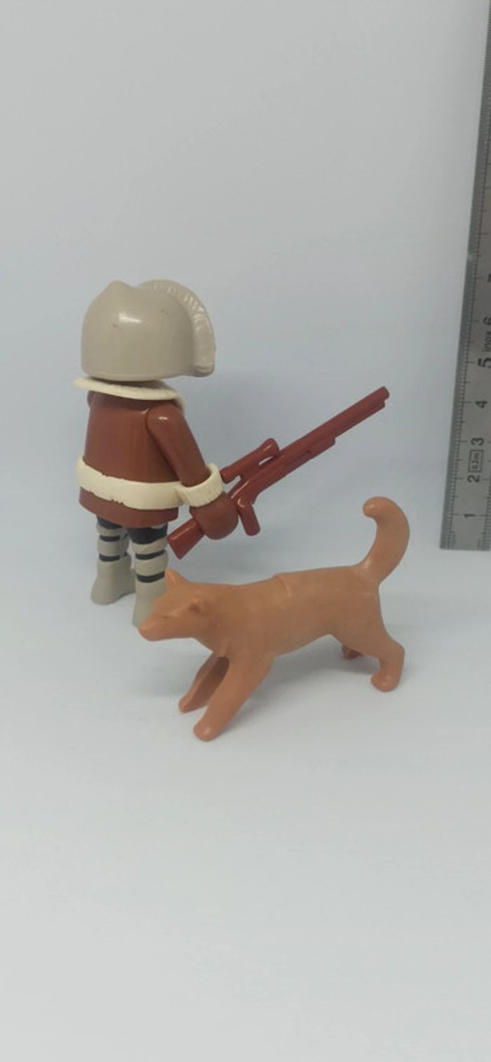 Homme esquimau inuit avec chien de traîneau husky marron vintage playmobil - photo numéro 1