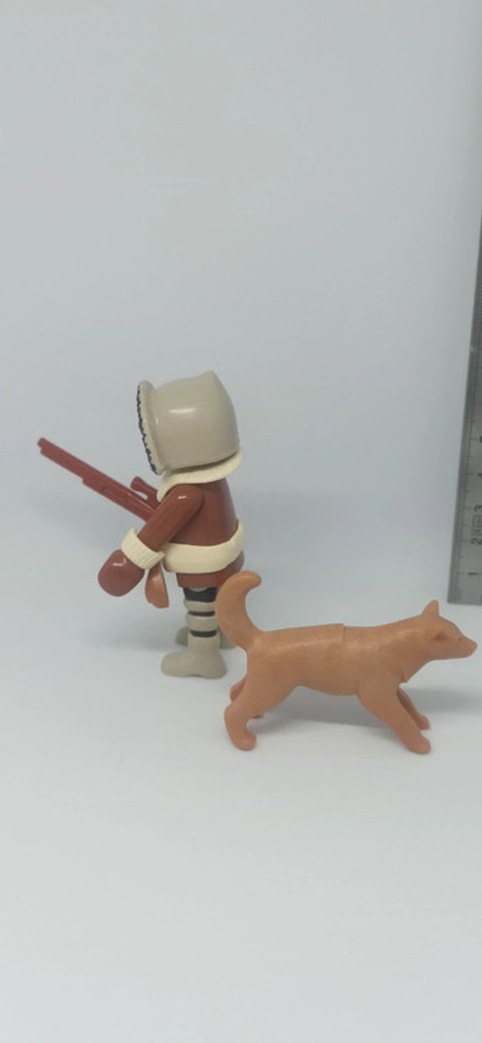 Homme esquimau inuit avec chien de traîneau husky marron vintage playmobil - photo numéro 2