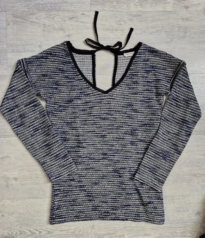 Joli pull Naf Naf XS décolleté bleu noir blanc avec fibre métallique - photo numéro 2