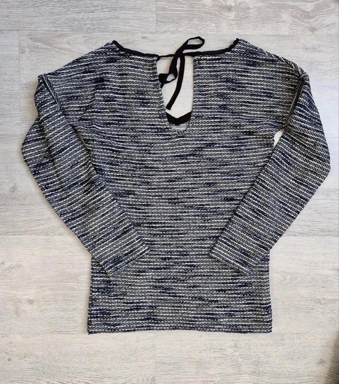 Joli pull Naf Naf XS décolleté bleu noir blanc avec fibre métallique - photo numéro 4