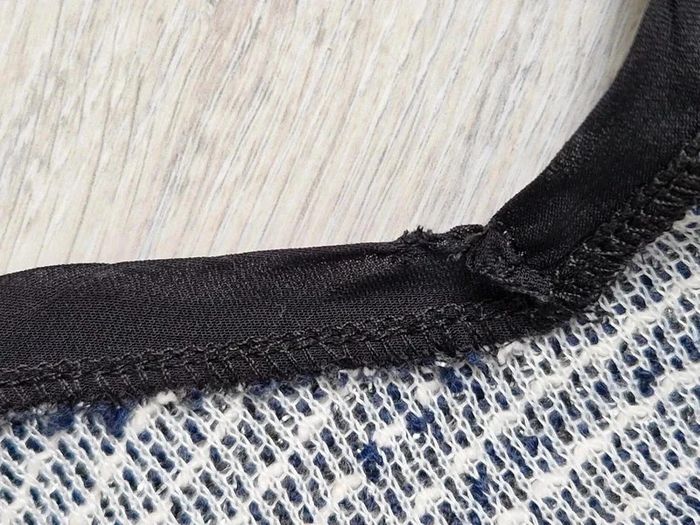 Joli pull Naf Naf XS décolleté bleu noir blanc avec fibre métallique - photo numéro 6