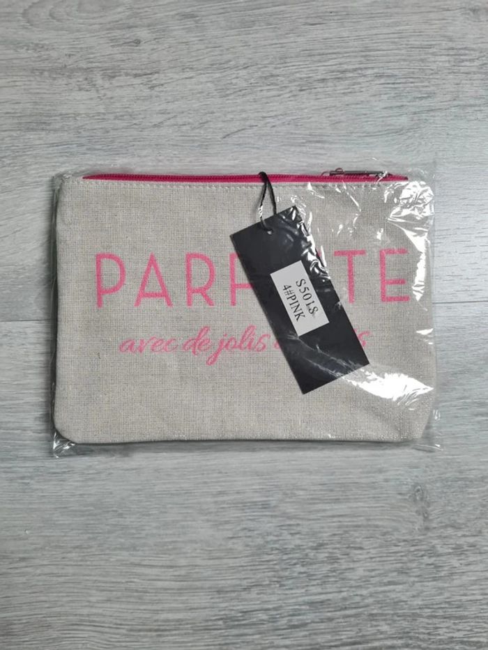 Pochette zippée beige dorée rose avec pompon "parfaite avec de jolis défauts" neuve avec étiquette - photo numéro 1
